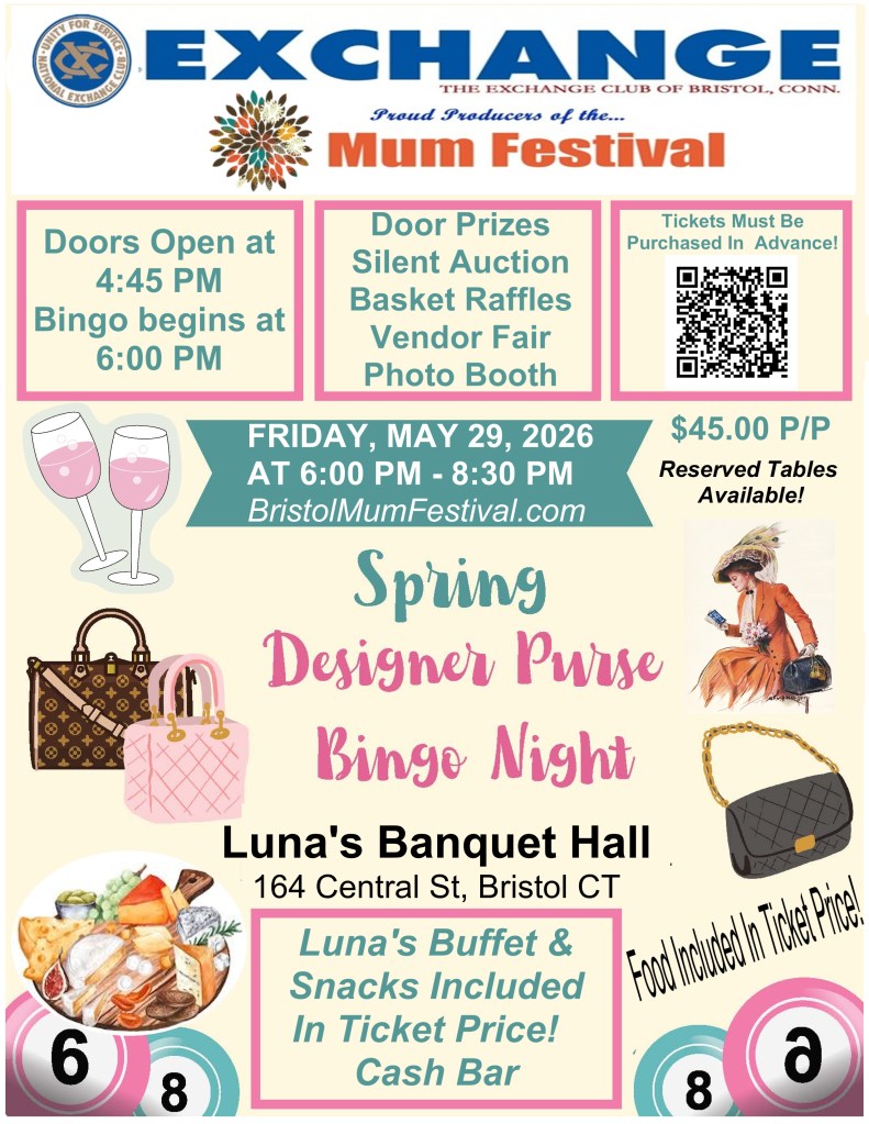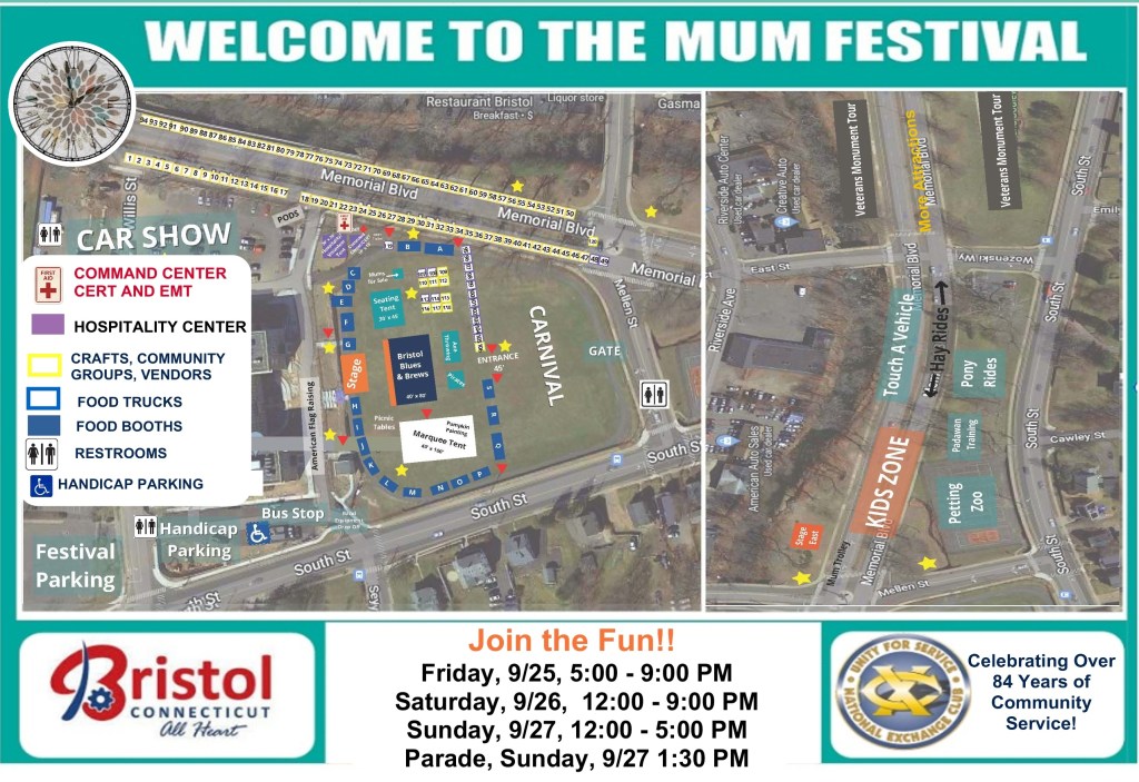 The Mum Festival is under the auspices of the Exchange Club of Bristol, Connecticut, Inc., and its main Benefactor is the City of Bristol Connecticut, Inc.